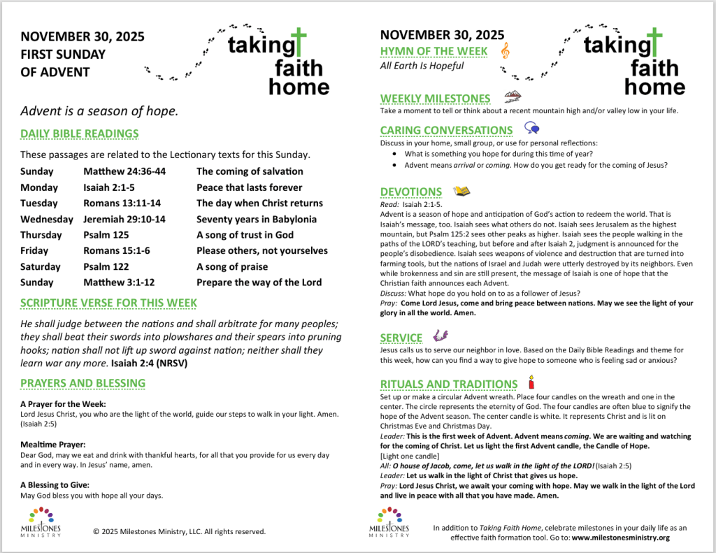Since 2014, Taking Faith Home has been published and sold by Milestones Ministry. And now, beginning January 1, 2026, Spirit & Truth Publishing will be the new home for this resource.
